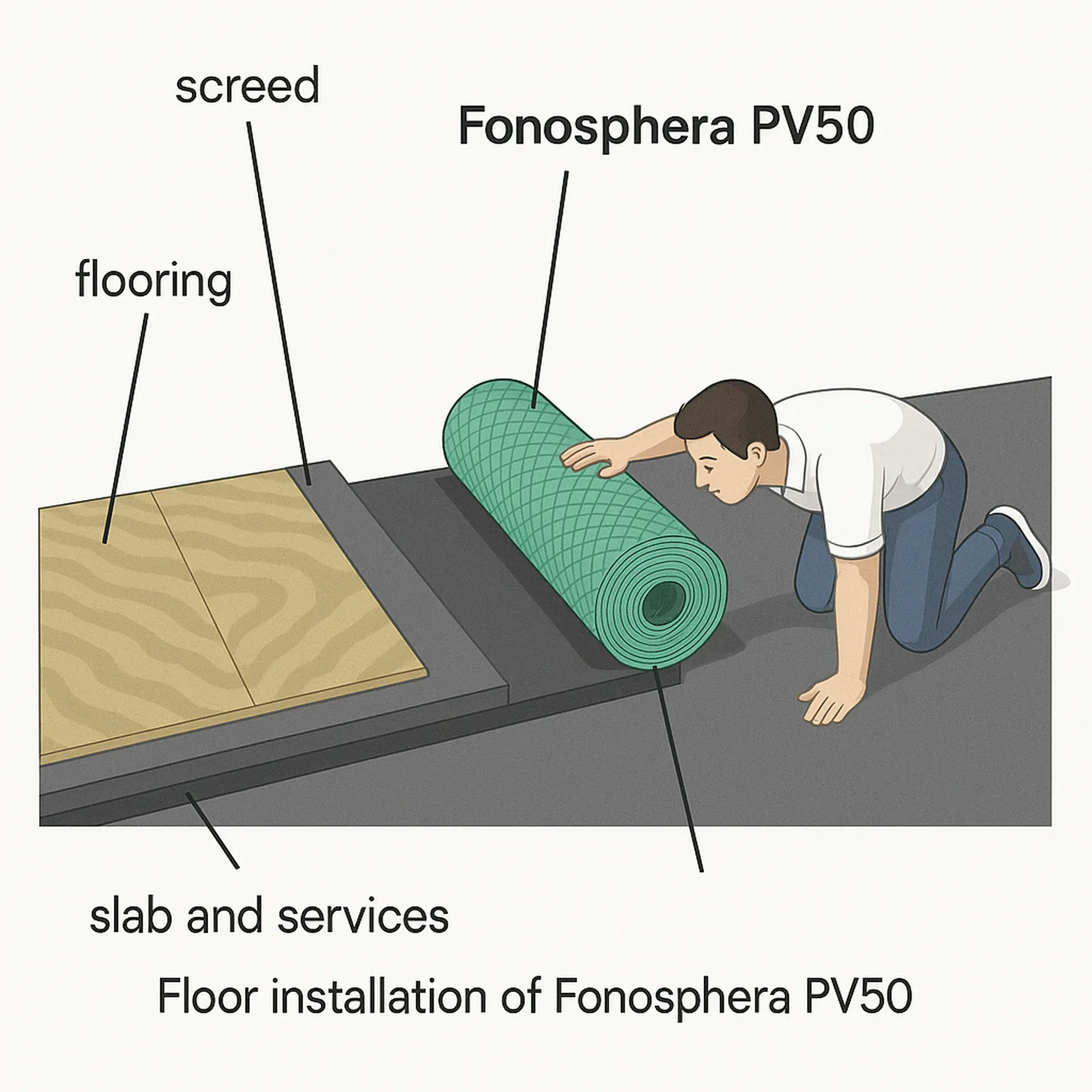 Particolarmente indicato come sotto massetto nell’isolamento acustico da calpestio per solaio e pavimentazioni varie (anche riscaldanti).