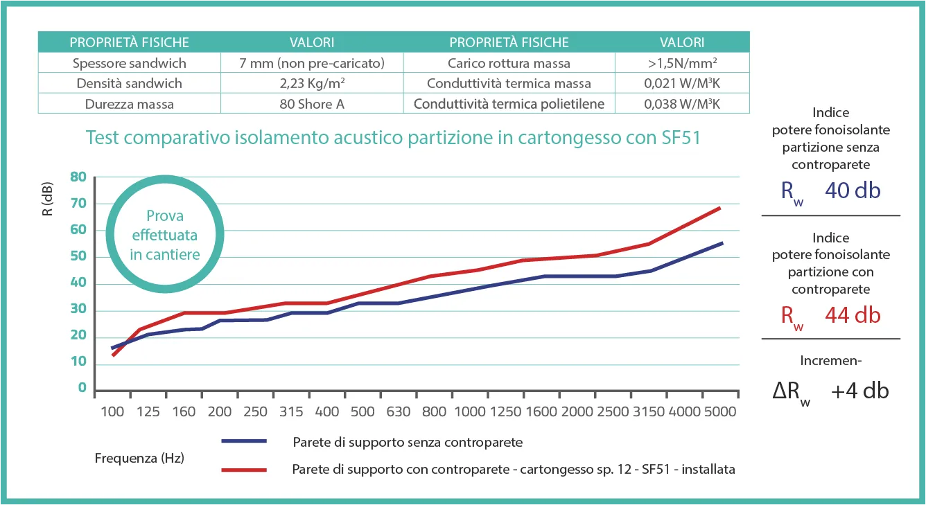 Conduttività termica polietilene: 0.038 W/M°K – RW: 33,8 dB
