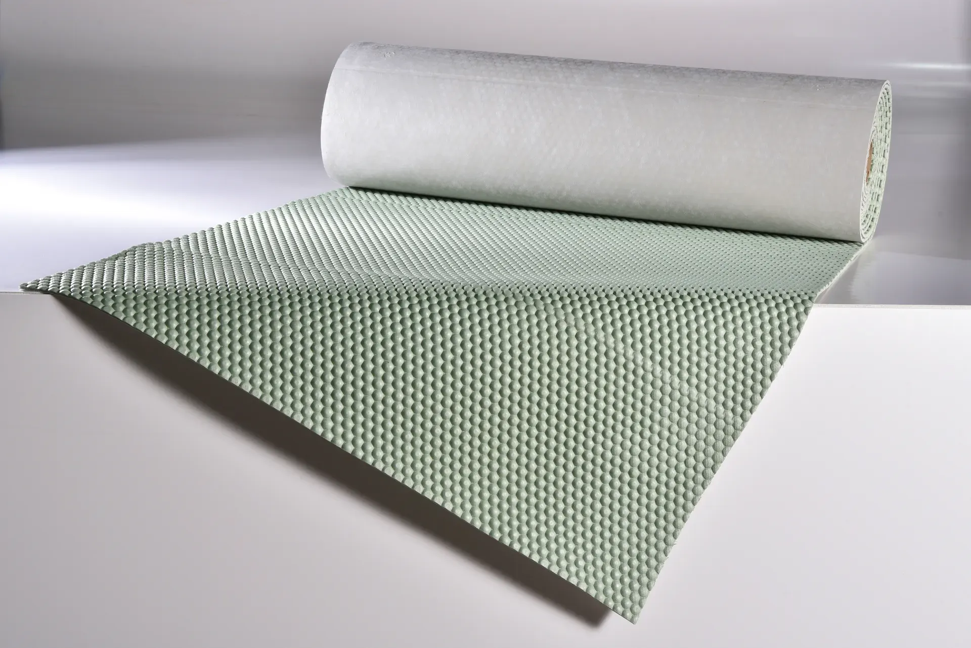 È composto da uno strato di polietilene termoformato sagomato a calotte sferiche. La massa è a base polimerica e cariche minerali, studiata per realizzare un elevato isolamento acustico. Il prodotto è inoltre certificato al fuoco in classe C (UNI EN 13501-1).